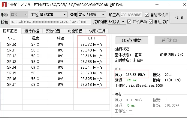 (2) 用来挖矿的矿机都有不同的算力,就拿电脑(显卡)挖矿来说。显卡算力越高收益越高(理论上),目前热门显卡型号有GTX1060、GTX1070、GTX1080/1080Ti以及AMDRX570/580,这类显卡算力是比较优秀的。